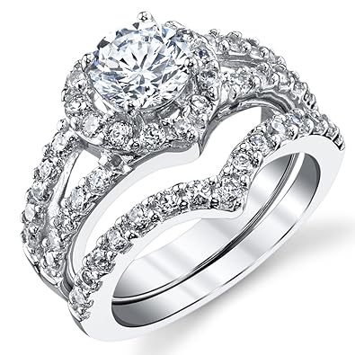 Heart shaped wedding rings bridal set